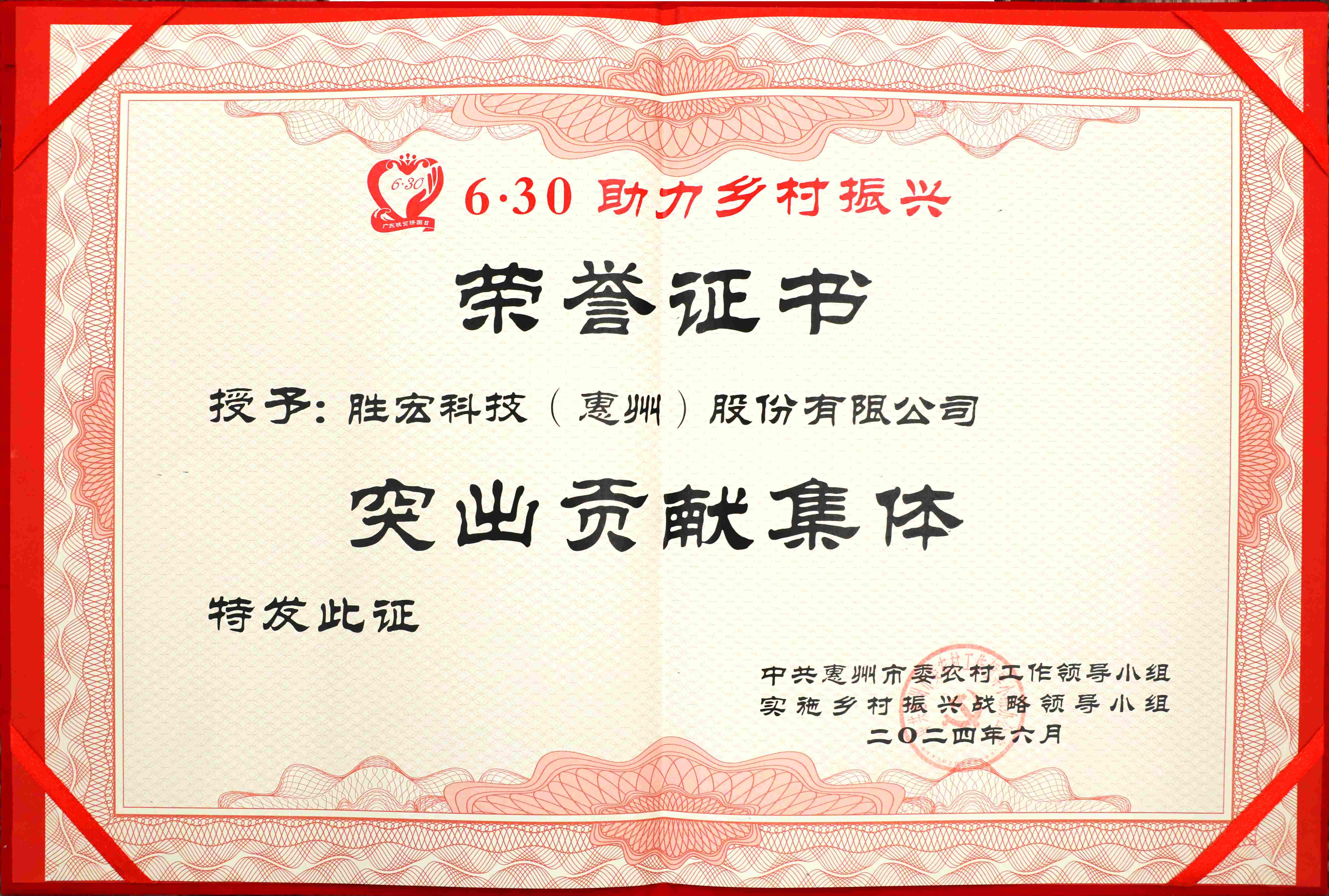 我司財(cái)務(wù)中心總監(jiān)朱國(guó)強(qiáng)代表公司出席了此次活動(dòng),并上臺(tái)領(lǐng)取了“惠州市2023年度‘6·30’助力鄉(xiāng)村振興突出貢獻(xiàn)集體”的榮譽(yù)牌匾與獎(jiǎng)狀。這是我司連續(xù)第二年獲此殊榮,充分體現(xiàn)了金年會(huì)科技在履行企業(yè)社會(huì)責(zé)任方面的積極態(tài)度和堅(jiān)定決心。這份榮譽(yù)的背后,是金年會(huì)科技以實(shí)際行動(dòng)助力鄉(xiāng)村振興的生動(dòng)寫照。