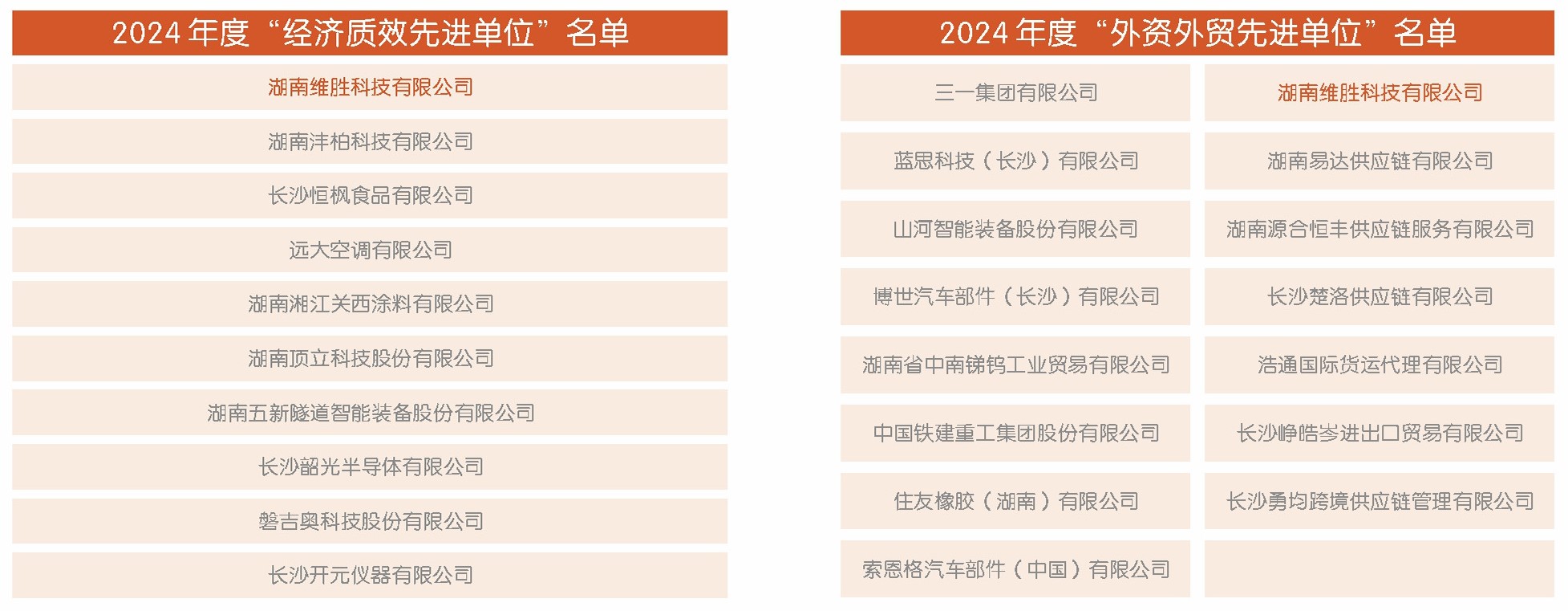 2月19日上午,長沙經(jīng)開區(qū)召開2025年高質(zhì)量發(fā)展大會,現(xiàn)場重磅發(fā)布2024年度“光榮榜”,對年度表現(xiàn)突出、貢獻卓越的企業(yè)單位予以表彰。維勝科技憑借領(lǐng)先的技術(shù)實力和勇于突破的探索精神,榮耀登榜,斬獲“經(jīng)濟質(zhì)效先進單位”與“外資外貿(mào)先進單位”兩項殊榮。