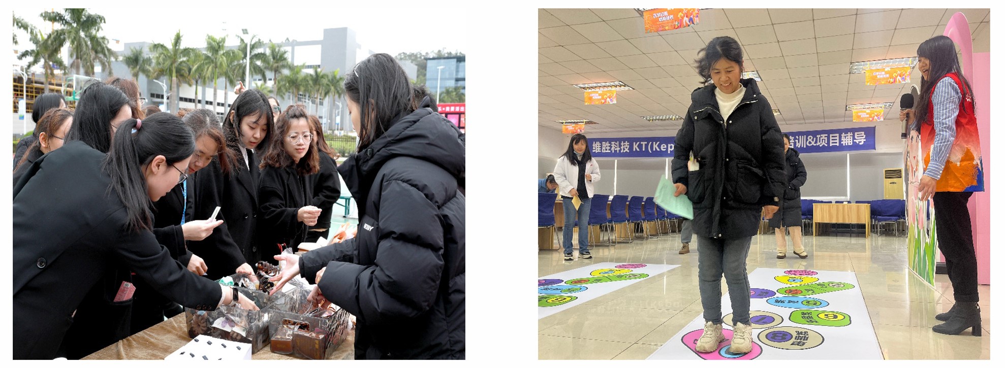 還記得小時候的跳房子的快樂嗎?在活動現場,工作人員提前用彩紙貼出一格格房子,參與者們躍躍欲試,按照圖案提示,小心翼翼地在方格間跳躍穿梭,一時間,歡笑聲、加油聲交織回蕩。跳房子游戲成功勾起大家的童年回憶,讓每個人沉浸在簡單純粹的快樂之中,現場滿是溫馨與美好。