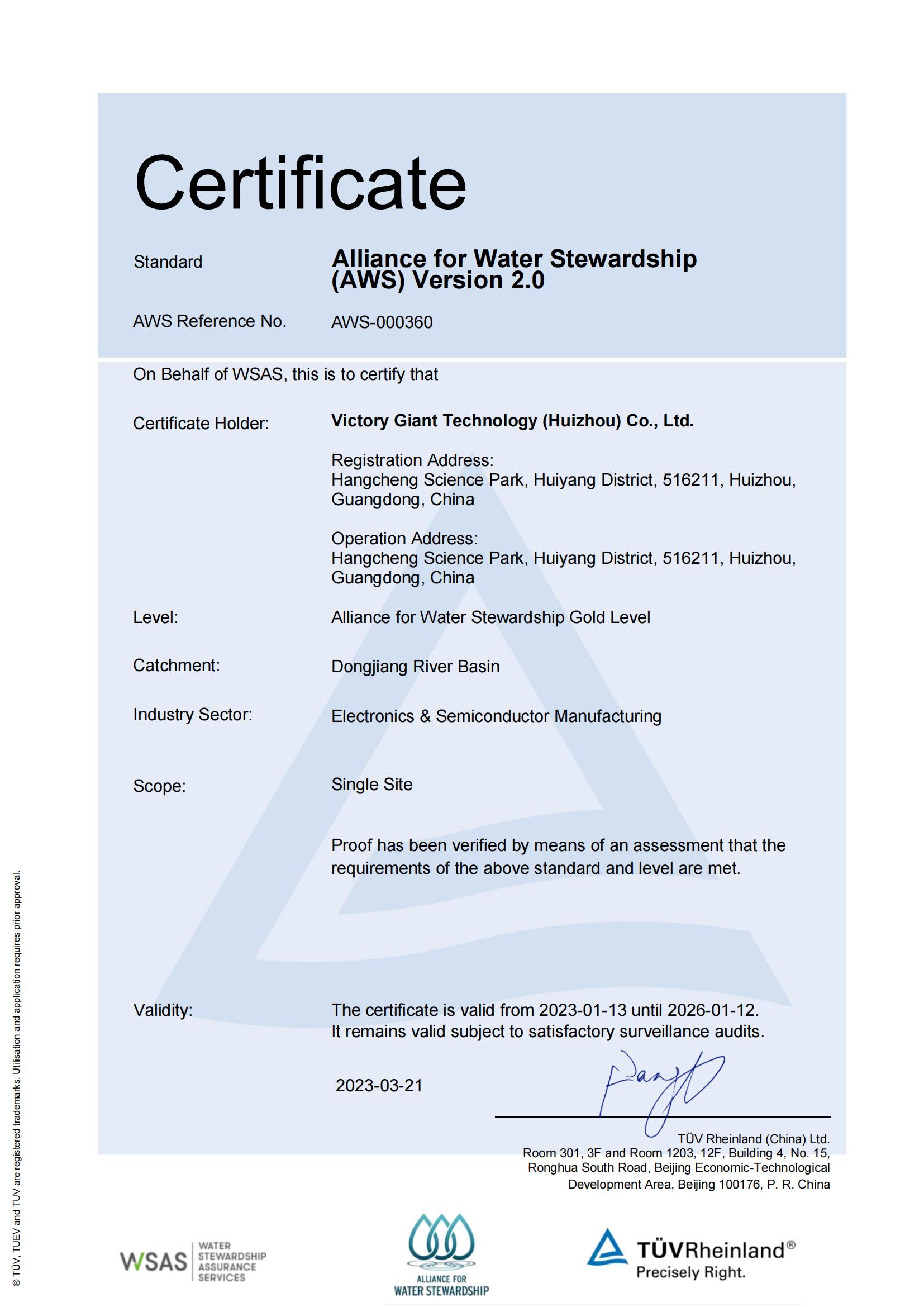 RBA VAP 社會責任審核證書