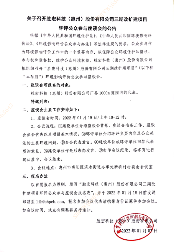 關于召開金年會(集團)智能科技股份有限公司三期改擴建項目環評公眾參與座談會的公告